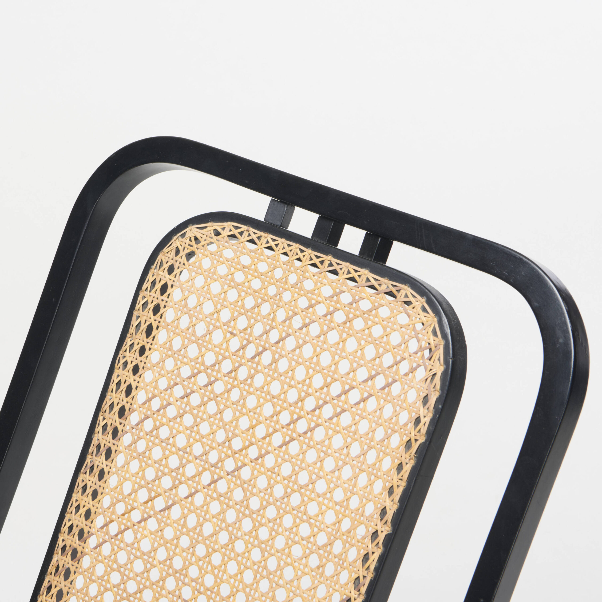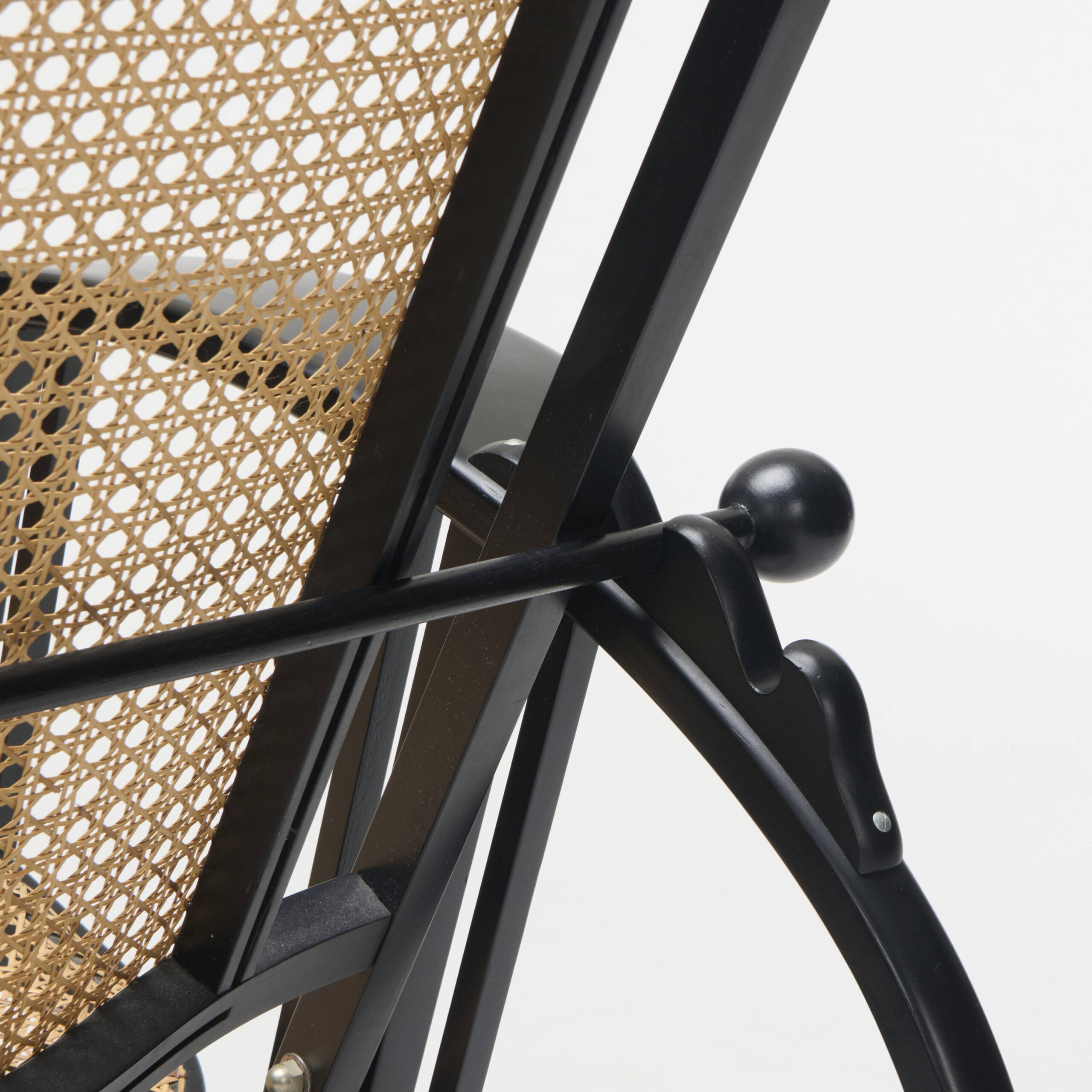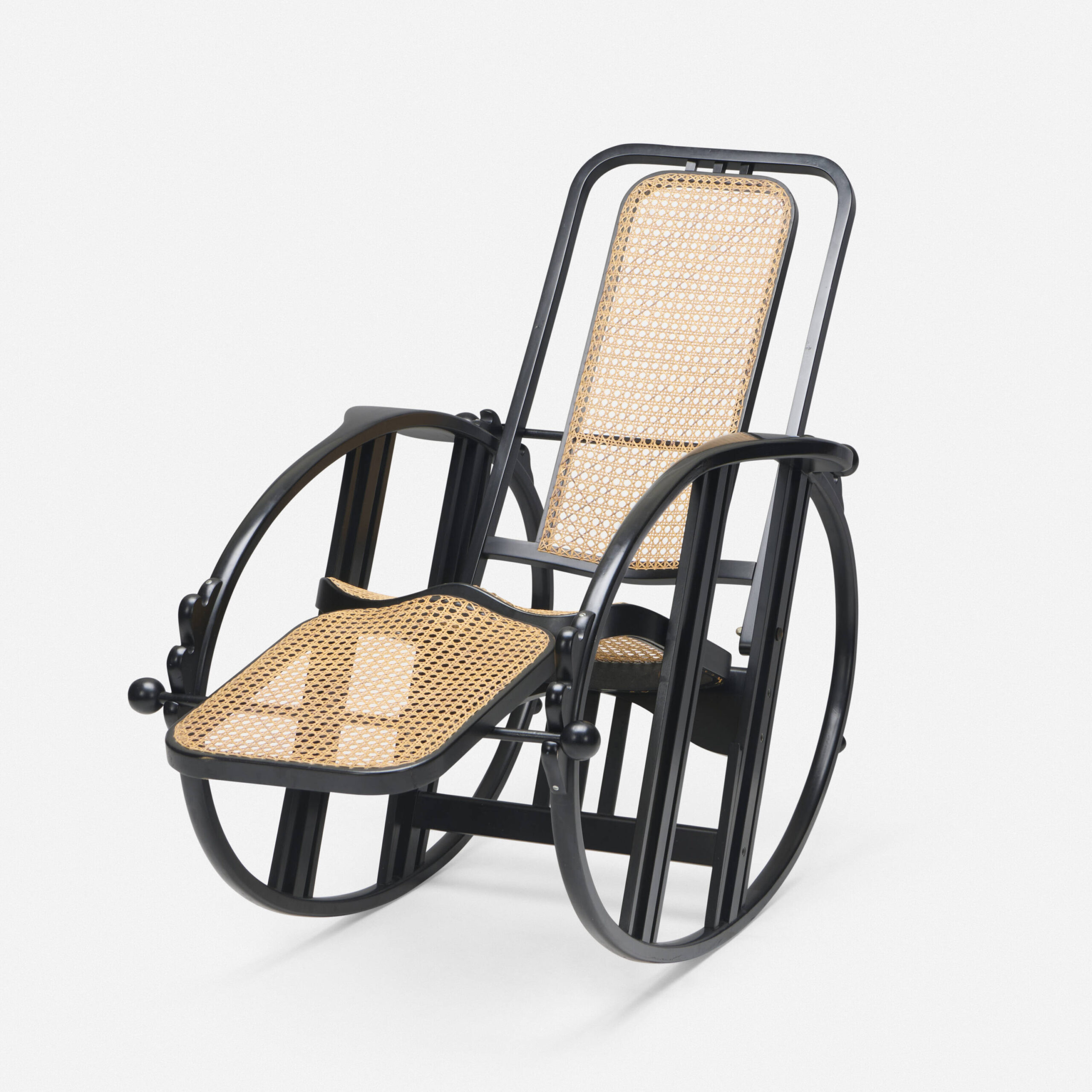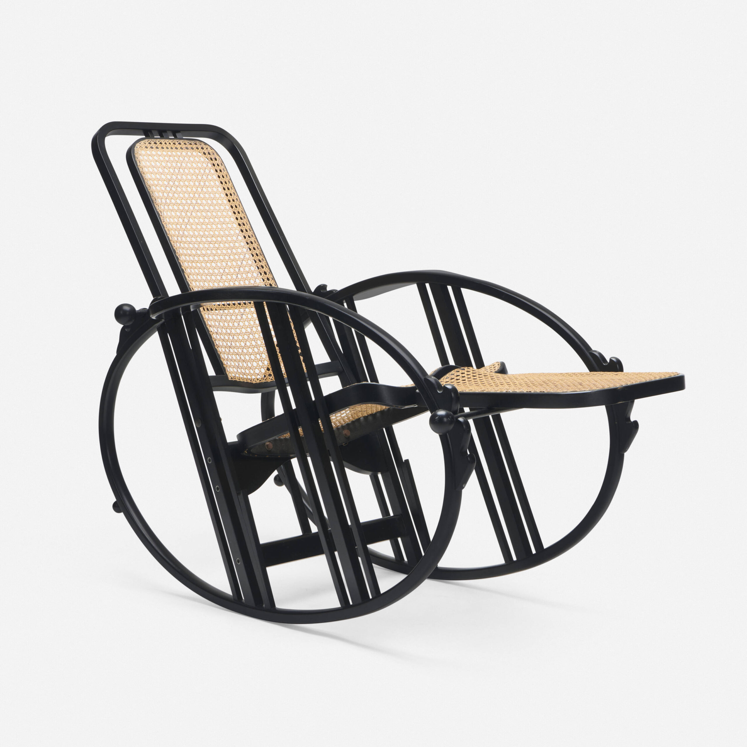 A rocking chair made with lacquered wood, and cane, manufactured by Wittmann.